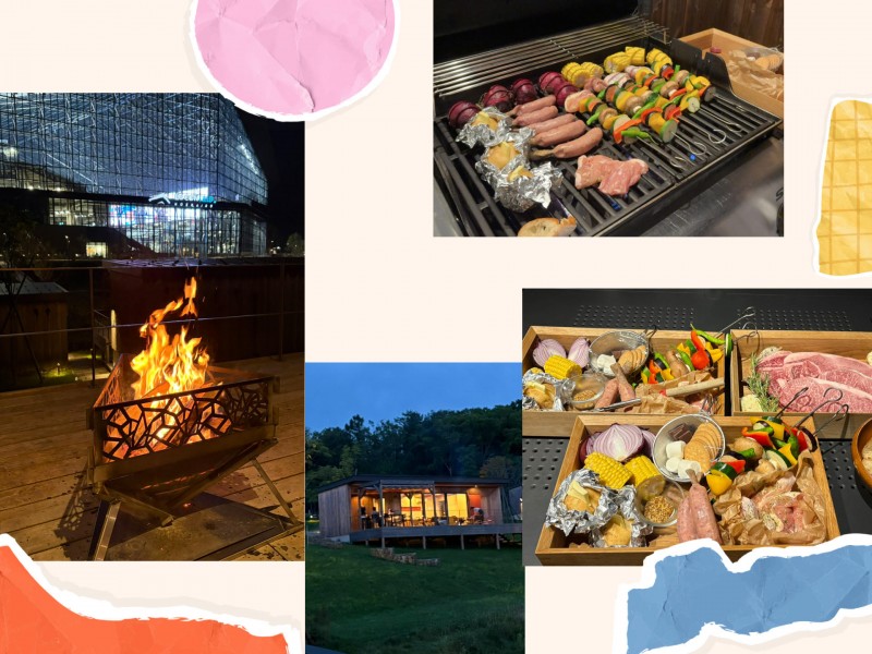 野球場を眺めながら入れる温泉や、BBQに焚き火、一泊でしたが