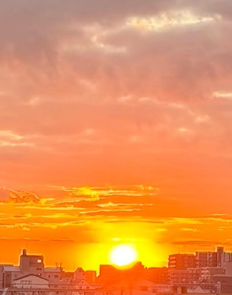 写真は、先週行った大阪で見た夕陽です。